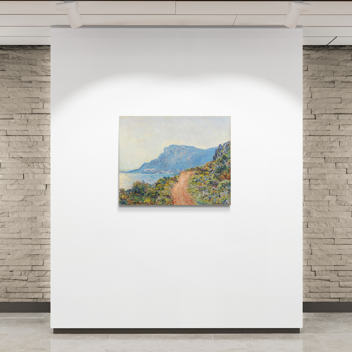 "La Corniche near Monaco" on Claude Monet’ särav ja meeleolukas maastikumaal, mis kujutab kaunist Corniche'i teed Prantsuse Rivieras, Monaco lähedal. Maalil on kujutatud käänulist teed, mis lookleb kaljusel nõlval, avanedes suurepärasele vaatele Vahemerele. Esiplaanil domineerivad soojades toonides kivised kaljud ja lopsakas taimestik, mille roheline värv peegeldab Vahemere regiooni elu- ja valgusrikkust. Taevas on hele ja päikesepaisteline, vihjates selgele ilmale ja andes maalile värske ja rahuliku tunde.