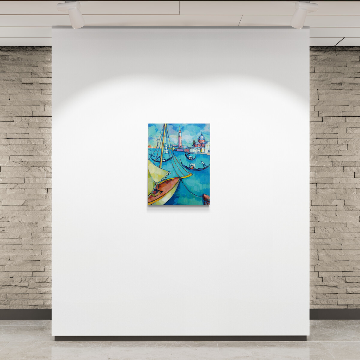 Mägi on siingi truuks jäänud oma iseloomulikule värvikäsitlusele, kasutades erksaid siniseid ja rohelisi toone, millele vastanduvad soojad oranžid ja punakad aktsendid. Need värvid loovad kompositsioonis tugeva dünaamika, mis peegeldab nii linna elurütmi kui ka veepindade liikumist. Kunstnik on teosele andnud selge perspektiivi, mis juhib vaataja pilgu üle veepinna ja arhitektuuriliste detailide, lastes linna ja looduse kokku sulanduda.