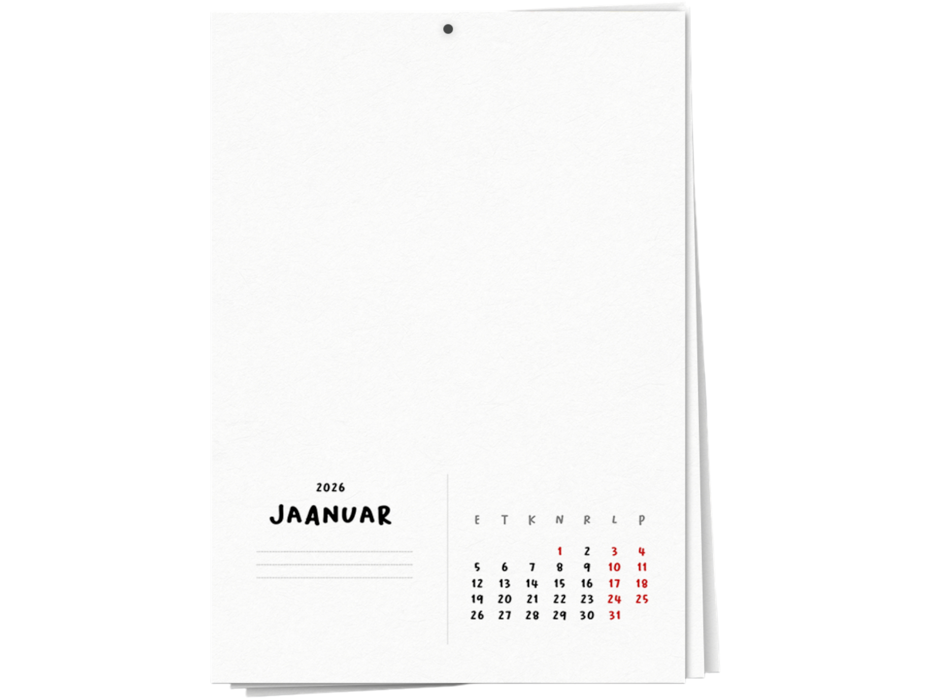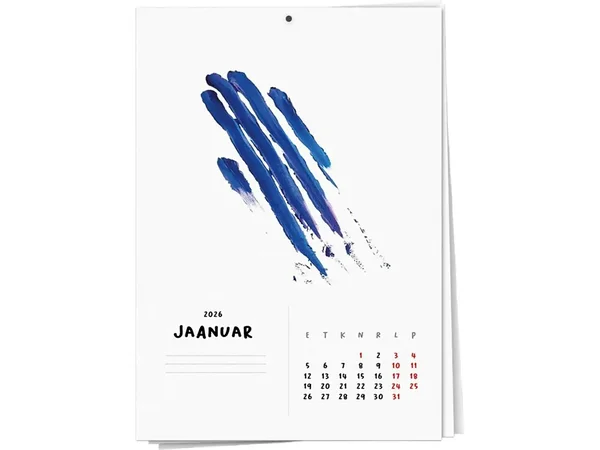 Kalendripõhi auguga PG2 on LOOVKALENDRI sarist kõige suurema ja ühtlasema pildialaga lahendus. Peaaegu kogu lehe ülemine osa on jäetud puhtaks loovtöö jaoks, kalendriplokk paikneb tagasihoidlikult allosas. See teeb PG2 kalendripõhjast eriti sobiva kunstikalendriks, brändi illustratsioonide esitlemiseks või personaalsete fotode ja kollaažide jaoks, kus pilt kannab peamist rolli ja kuupäevad toetavad seda diskreetselt.