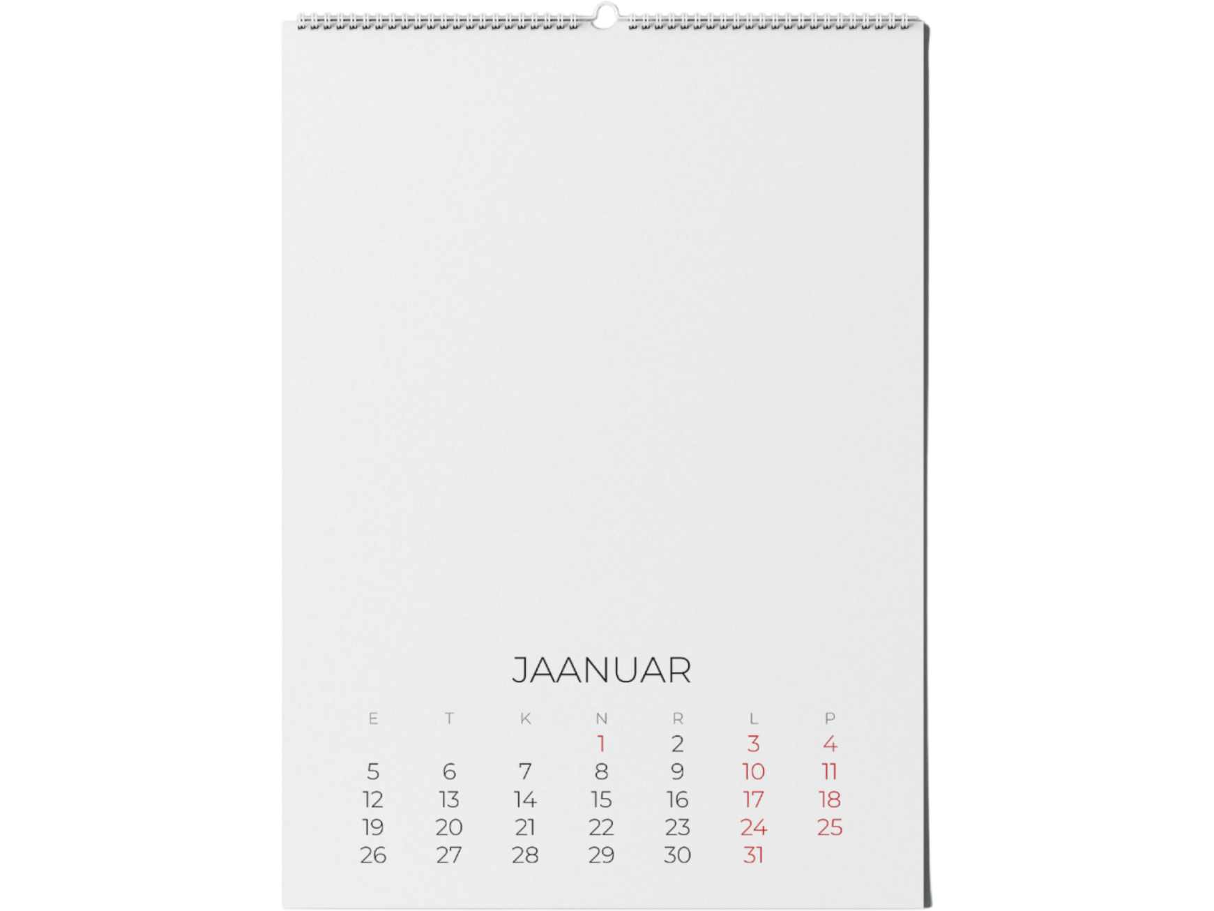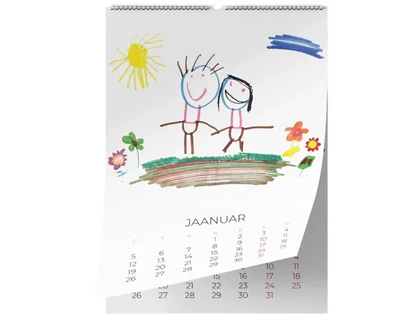 Kalendripõhi riputuskonksuga PG5 on LOOVKALENDER sariast üks kõige universaalsema ja tasakaalus paigutusega lahendus. Lehe ülaosas on suur, selge ja piiritletud pildiala, allosas hästi loetav kalendriplokk. Selline ülesehitus sobib võrdselt hästi laste joonistustele, perefotodele, rahulikuma stiiliga kunstile või ettevõtte visuaalidele – igal kuul saab anda kalendrile täiesti oma näo, samal ajal kui kuupäevad ja tähtpäevad püsivad selgelt loetavad. Spiraalköide ja metallist riputuskonks hoiavad kõik lehed koos nagu klassikalisel seinakalendril ning võimaldavad kalendrit mugavalt lehekülgede kaupa pöörata.
